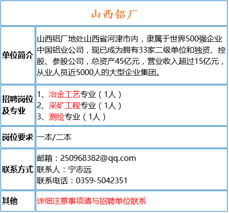 我們期待著您的加入,共同為鋁廠的明天添磚加瓦,注:本文所述招聘信息僅供參考,具體職位、要求和流程可能因?qū)嶋H情況而有所調(diào)整,求職者在實際申請過程中,請仔細(xì)閱讀并遵循我們的招聘流程和要求。