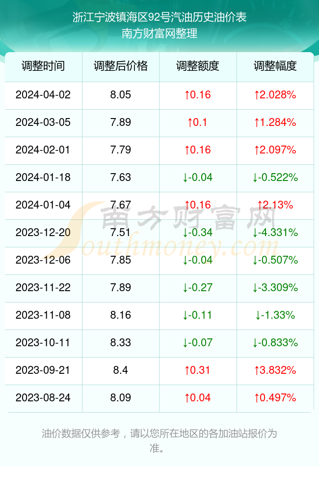 本文旨在為廣大車主提供關于寧波地區(qū)92號汽油的最新價格動態(tài),深入分析油價波動的原因及影響因素,并預測未來可能的趨勢,以下是詳細內容: